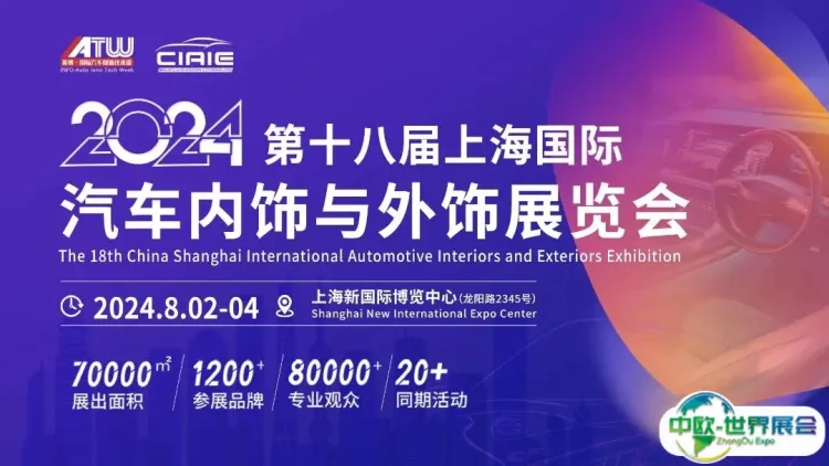 CIAIE 2024第十八届上海汽车内饰与外饰展,8月2日--4日上海新国际博览中心,我们不见不散!赶紧观众预登记参观吧~