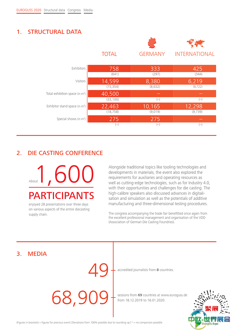 德国纽伦堡压铸展览会(EUROGUSS)是欧洲乃至全球锻造压铸行业规模最大的展之一。展出产品将涵盖锻造技能、压铸设备上下游产品、熔化保温炉、压铸模具、压铸件及锻造压铸周边有关技能及设备。EUROGUSS同期还举办了各类压铸锻造行业的专题研讨会。