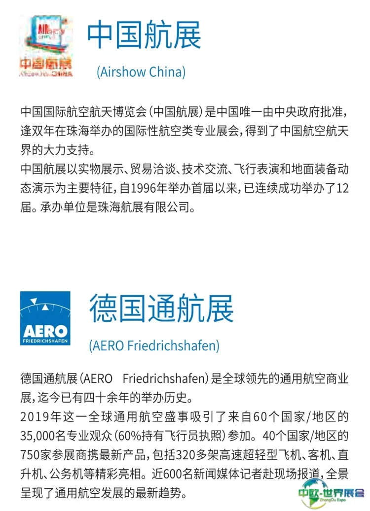 主办单位:德国通航展(AERO)、中国航展(Airshow China)