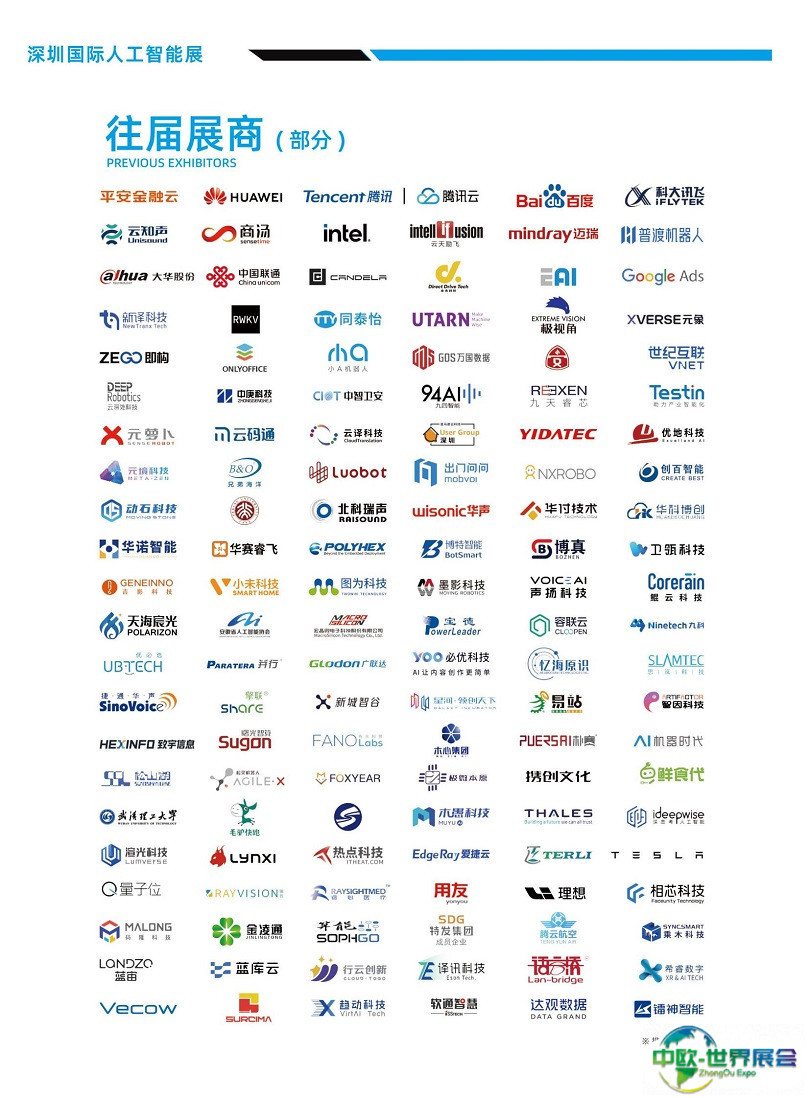 深圳国际人工智能展(GAIE)自2020年创办以来,得到了行业领军企业的积极响应和广泛参与。国内外知名展商包含平安科技、中国银行、华为、科讯飞、腾讯、英特尔、英伟达、汉王、迈瑞医疗、旷视科技、特斯拉、云天励飞、华声医疗、极视角等。