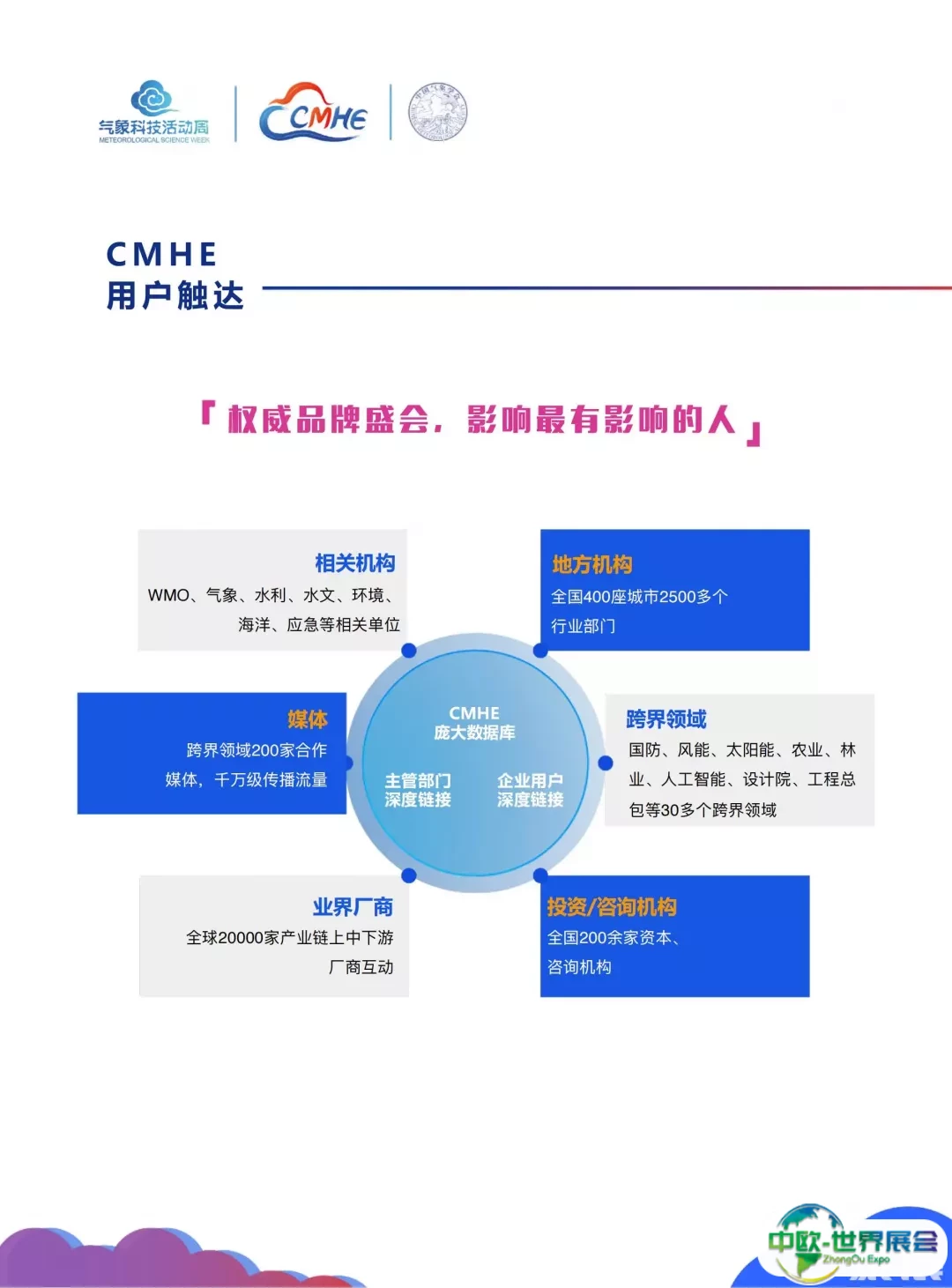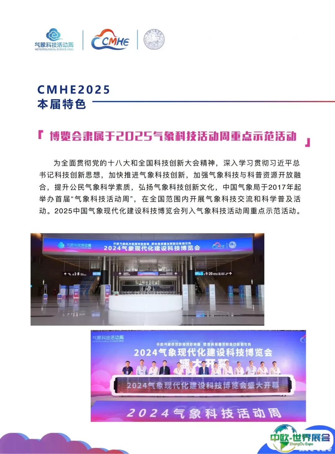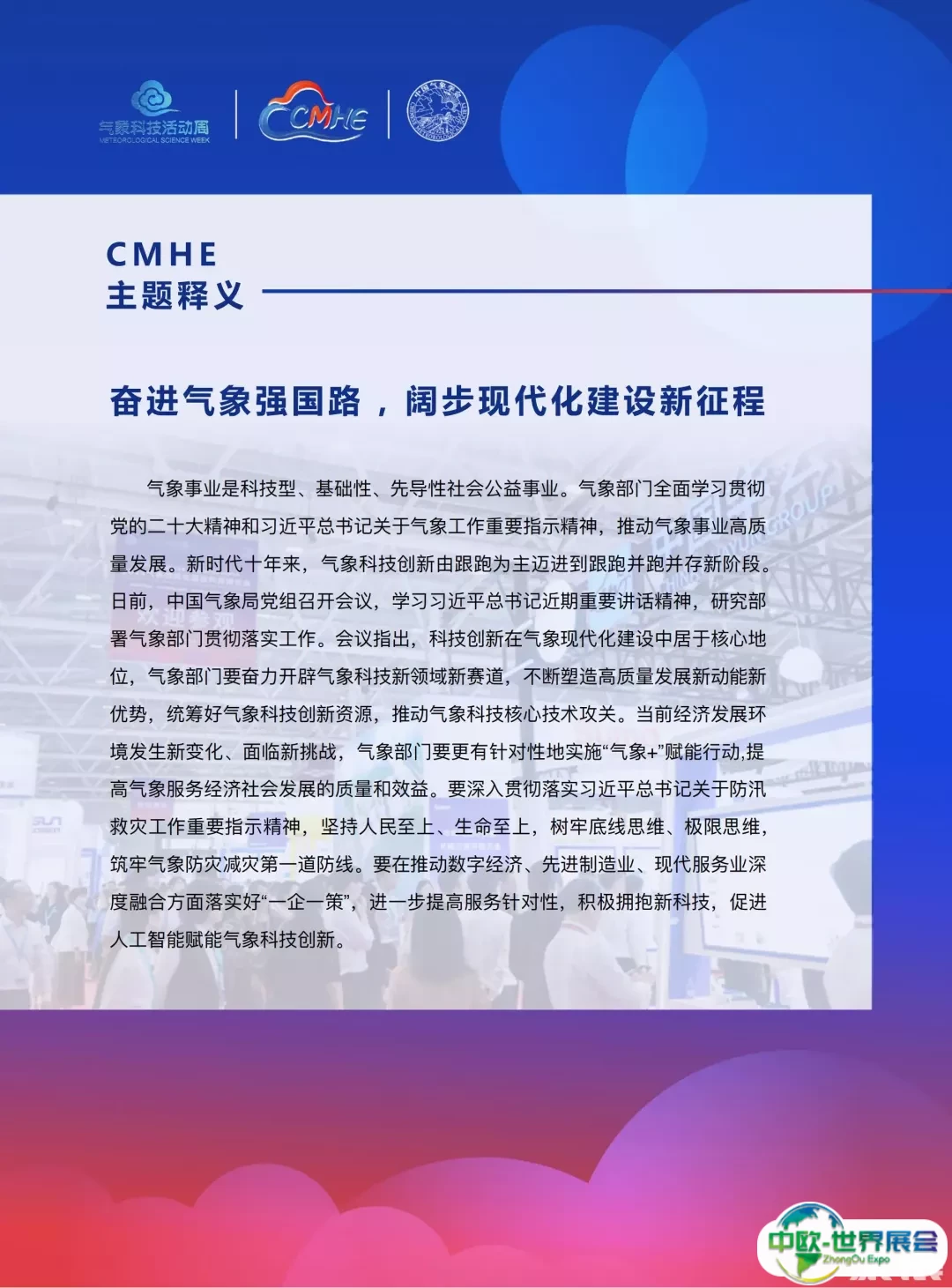 中国气象科技展览会(CMHE EXPO)是亚洲最大规模、最权威的气象科技展览会。由中国气象学会(CMS)举办,国家气象中心、国家气象信息中心、国家气候中心、中国水利部水文局、中国环境科学学会大力支持。中国气象科技展CMHE EXPO是国内唯一的国家级专业展览。