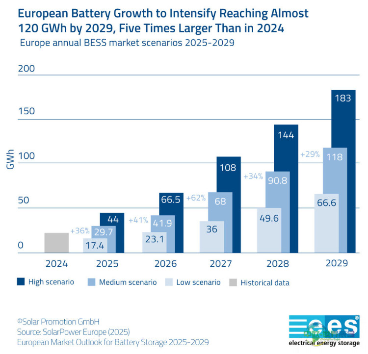 2025–2029年欧洲电池储能市场展望:关键数据一览