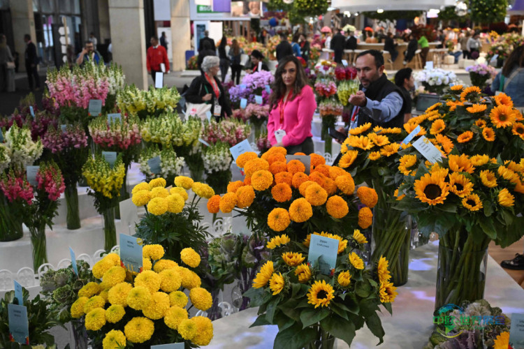 图为10月2日在波哥大花卉博览会上展出的各类鲜花。 新华社/法新