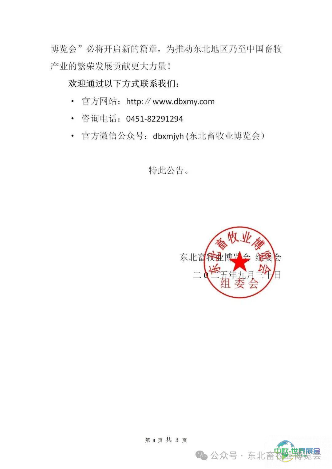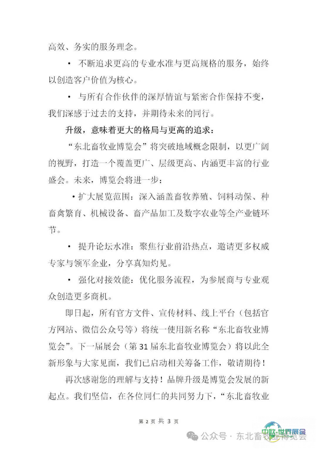 从今日起,所有官方文书、推广资料、网络平台将统一启用新名称 “东北畜牧业博览会”。