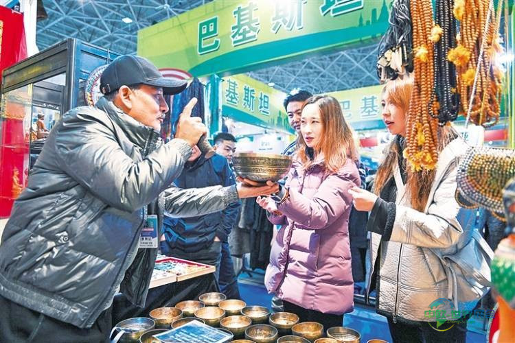 11月12日,消费者在尼泊尔展区选购商品。当天,第十三届中国·内蒙古进出口商品博览会在内蒙古国际会展中心拉开帷幕,展期共6天。本届博览会以“创新商务模式、提升国际化水平”为主题,设立了超过300个展位,吸引了来自法国、巴基斯坦、俄罗斯等20多个国家的企业参与,集中展示了包括特色食品、手工艺品、美妆产品等在内的数千种特色商品。(记者 王磊 摄)