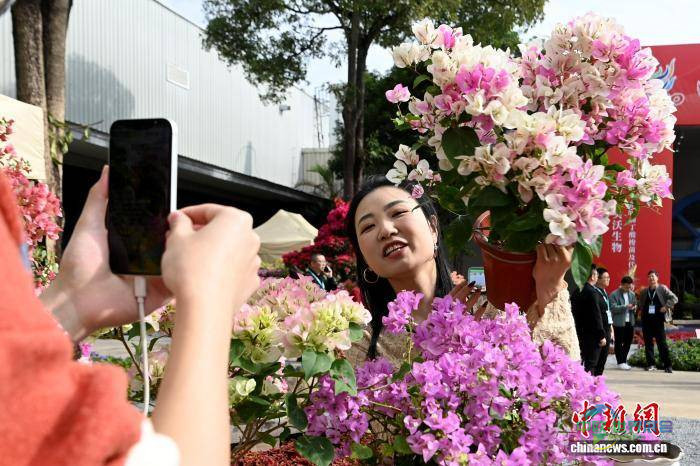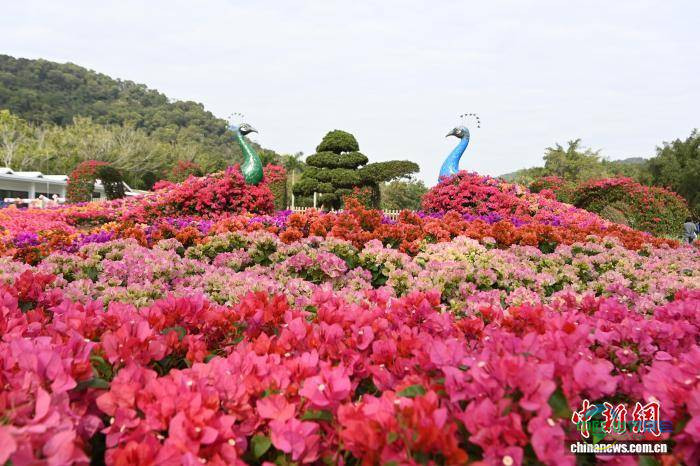 图为户外展区内色彩绚丽的三角梅,构成了一道迷人的风景。中新社记者 张金川 摄