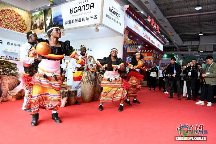 图为国际展位前的文化表演吸引了大量观众停留观看。中新社记者 张金川 摄