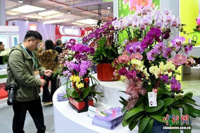 图为摄影爱好者正在蝴蝶兰盆景前进行拍摄。中新社记者 张金川 摄