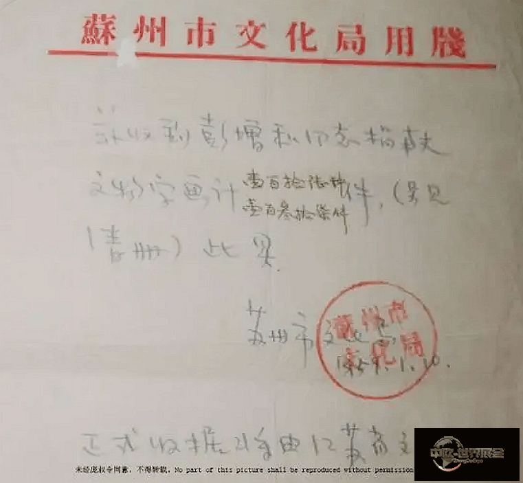 庞叔令称,他们在查验南京博物院库房后不久,南京博物院以书面形式告知,这五幅画被认定为“伪作”,已从藏品序列中“剔除”,并进行了“划拨、调剂”处理。