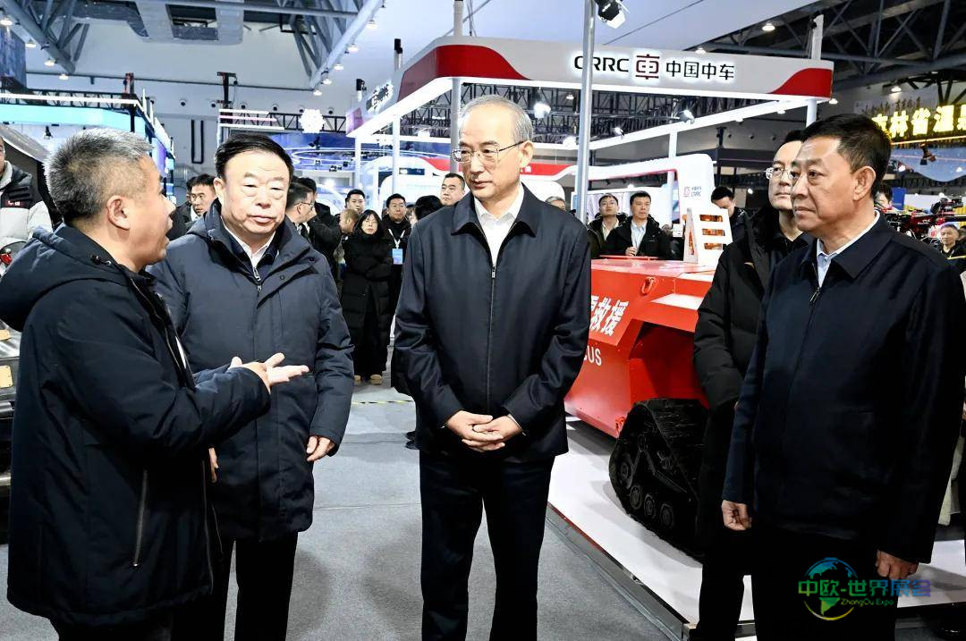 12月18日,省委书记黄强和省委副书记、省长胡玉亭实地走访第九届吉林冰雪产业国际博览会,仔细听取关于冰雪特种车辆性能特点的讲解。