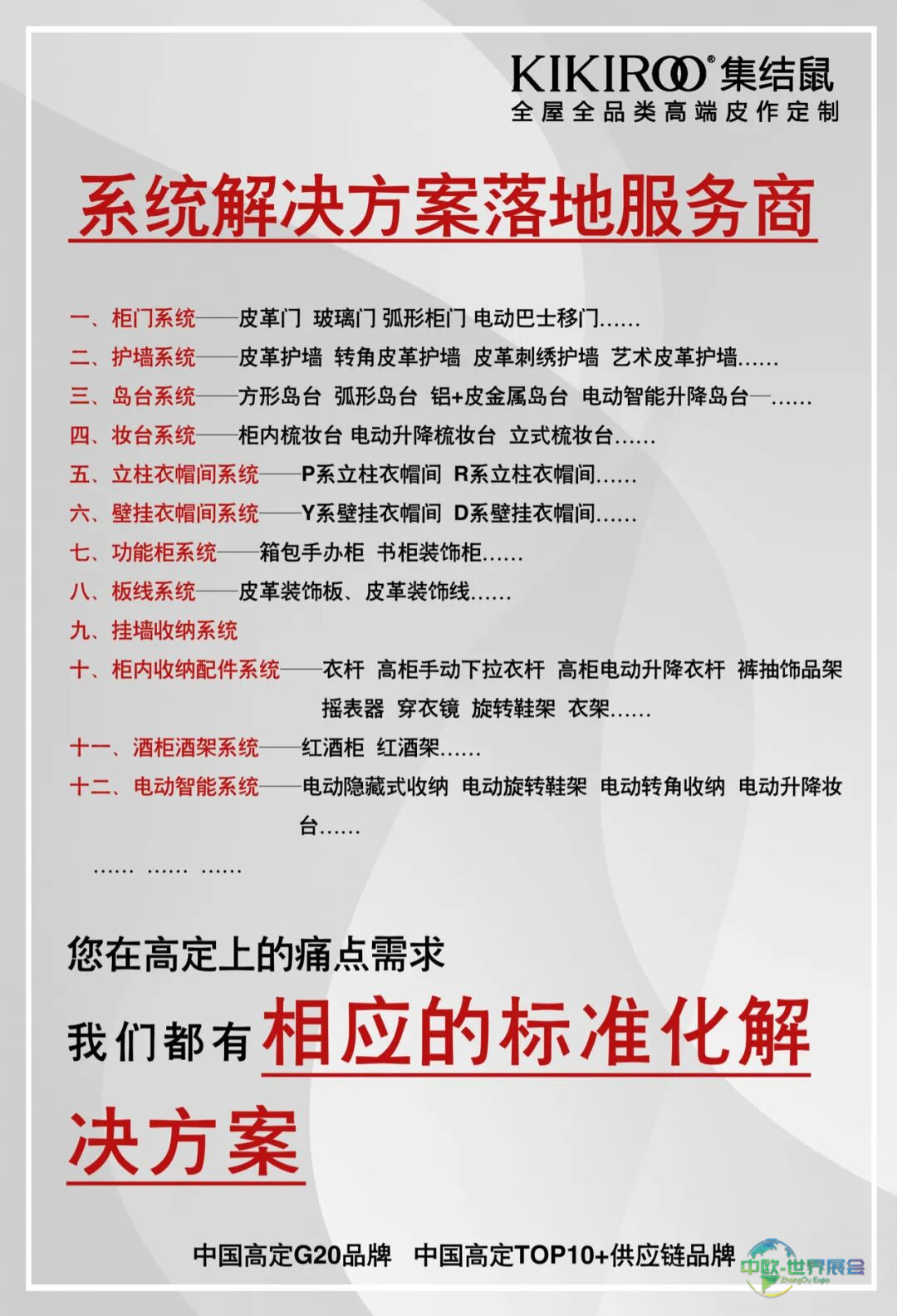 作为高定俱乐部成员、中国高定G20品牌、中国高定TOP10+供应链品牌等多重荣耀,KIKIROO集结鼠从未停止革新的脚步。作为全屋全品类高端皮作定制的系统解决方案落地服务商,品牌始终以用户需求为导向,在质感与实用间寻找完美平衡,让每一件皮作产品都成为品质生活的注解。