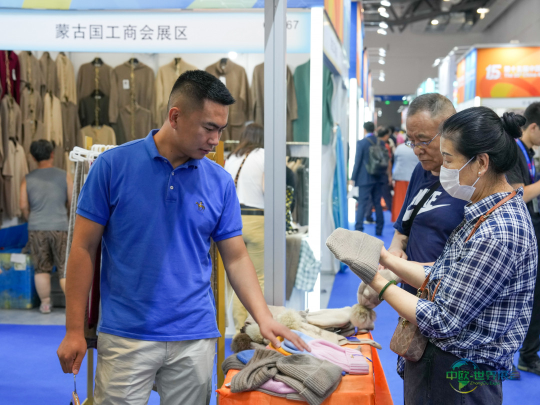8月27日,参观者在第十五届中国—东北亚博览会现场挑选蒙古国特色商品。新华社记者 张楠 摄