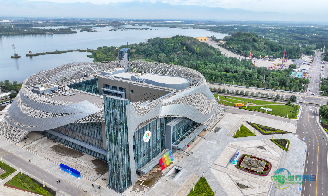图为8月28日在宁夏银川市拍摄的第七届中国—阿拉伯国家博览会开幕式举办地——宁夏国际会堂外景(无人机照片)。新华社记者 冯开华 摄