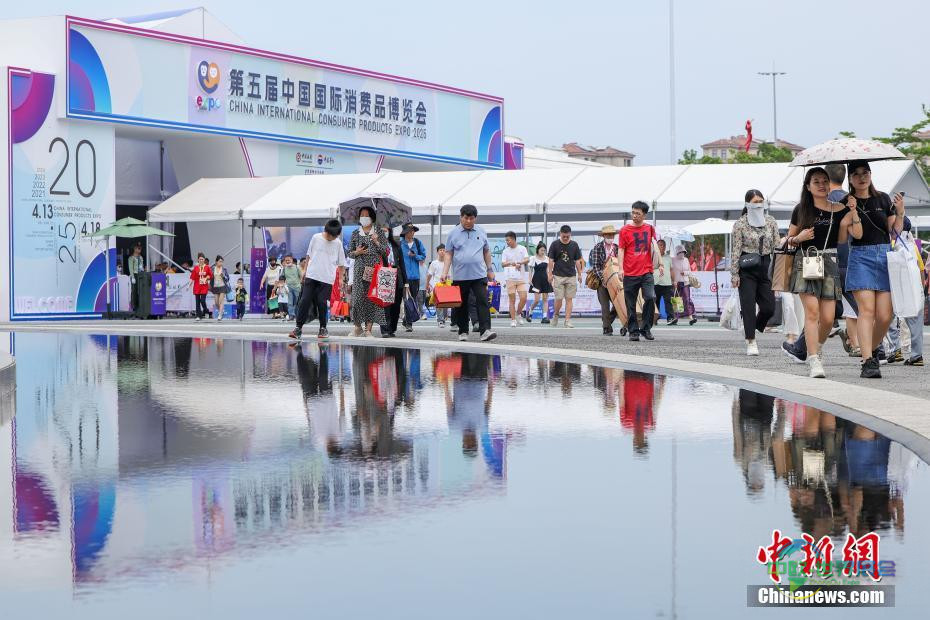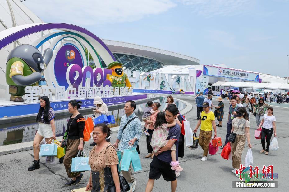 4月18日,第五届中国国际消费品博览会(简称“消博会”)在海南海口圆满结束。本届展会成功吸引了全球71个国家和地区的1767家企业及4209个品牌前来参展,专业采购商人数突破6万,成为规模最大的一届。图为前来观展的市民正陆续离场。中新社记者 骆云飞 摄