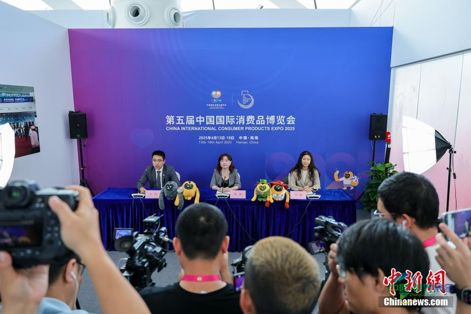 4月18日,第五届中国国际消费品博览会(简称“消博会”)在海南海口圆满收官。本届消博会汇聚了来自71个国家和地区的1767家企业与4209个品牌,专业采购商超6万人,规模达到历史顶峰。图为第五届中国国际消费品博览会新闻通气会的现场情况。中新社记者 骆云飞 摄