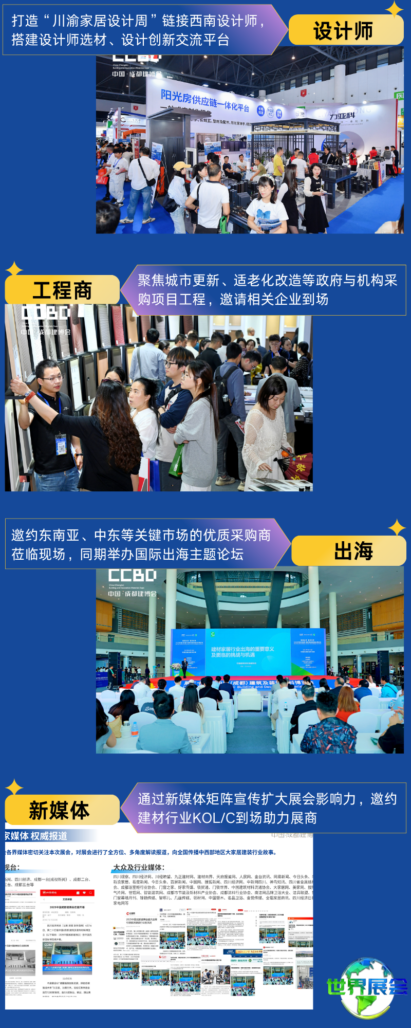 2026中国成都建博会,已为您铺就通往中西部市场的黄金之路——七大精准客源准备就绪,九大体系保障观众质量。这里是连接销售渠道、对话设计力量、承接工程项目、迈向国际市场的一站式战略平台,诚邀您抢占宝贵展位,与业界领袖共同描绘2026年的发展蓝图!