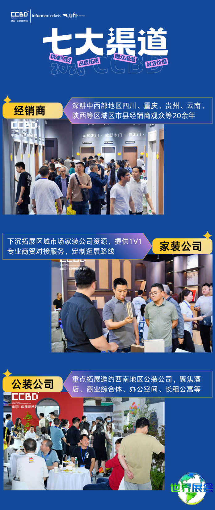 参展企业的核心需求,在于“精准匹配需求,高效促成交易”。2026中国成都建博会以精准商业对接为核心,深度运营七大关键观众渠道,覆盖产品市场验证、工程项目落地、设计美学提升、国际市场开拓、品牌影响力建设、战略采购与源头技术创新等全场景,助力企业打通产品竞争力、品牌价值与商业转化的关键节点,满足全方位渠道拓展的需要。