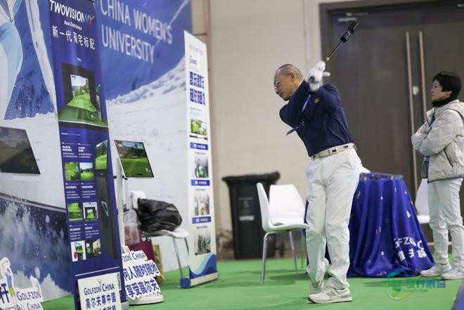 12月26日,现场工作人员正在演示一款便携式高尔夫运动设备。新华社记者 王翔 摄