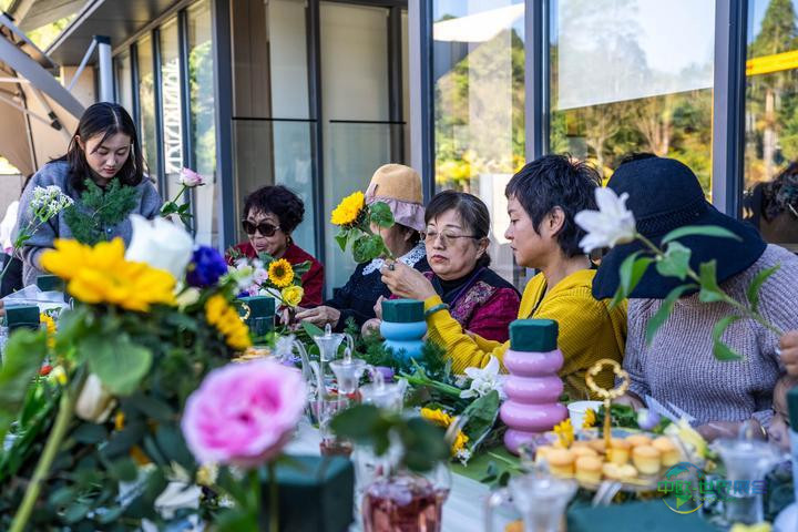 2025年11月29日,在普洱市思茅区旅居的老人们参加社区组织的插花活动。