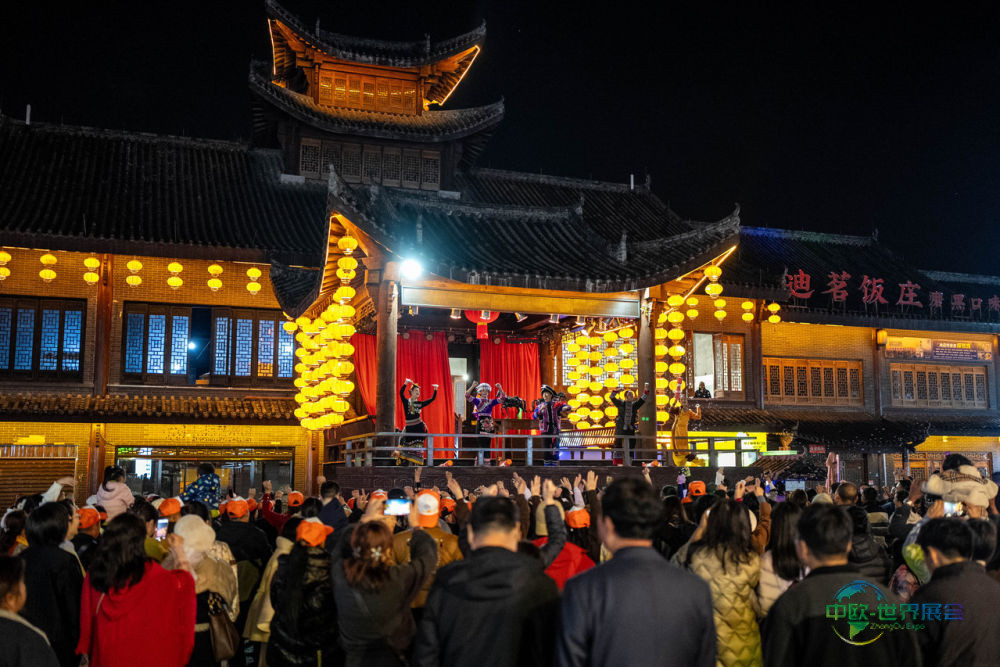 2025年11月29日,游客们在普洱市茶马古城旅游小镇欣赏舞蹈表演。