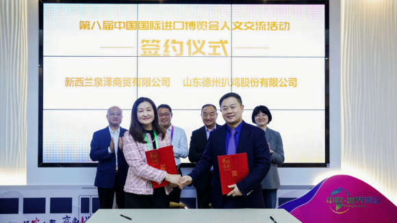 借助进博会平台,拓展全球客户资源。今年进博会期间,“山东老字号全球行之走进新西兰”签约仪式顺利举行,新西兰泉泽商贸分别与德州扒鸡、鲁味斋签署合作协议,成功收获千万订单。大染坊国潮丝巾因融合传统纹样与现代设计,与意大利、南非等多国客户达成合作意向;同文堂毛笔不仅获得俄罗斯、利比里亚等海外订单,还被国内多家企业选为年终礼品,实现大宗采购,展现出“国内国际双循环”的积极发展态势。