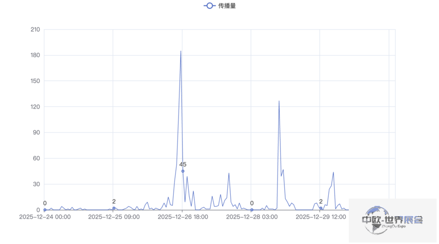 根据图表显示,关于2025中国婴幼儿服务产业博览会的信息传播在12月26日达到峰值,当日传播信息量为185条,占总量的15.51%。