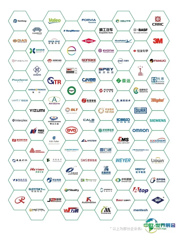 博世、电装、采埃孚、麦格纳、宁德时代、现代摩比斯、爱信精机、佛瑞亚、大陆、李尔、巴斯夫、法雷奥、安波福、天纳克、住友电工、华域汽车、延锋、博格华纳、日立安斯泰莫、安道拓、马勒、矢绮、马瑞利、海斯坦普、舍弗勒、德纳、彼欧、捷太格特、奥托立夫、博泽、均胜电子、翰昂、海纳川、安通林、伟世通、德赛西威、拓普、中鼎、德昌电机、华域视觉、星宇车灯、海拉、曼得、中创新航、国轩高科、亿纬锂能、LG、欣旺达、鹏辉、瑞浦、孚能科技、松下、三星、远景、力神、蜂巢、比克、大洋、方正、弗迪、精进电动、汇川、巨一、卧龙、中车、双林、松下、ABB、西门子、英搏尔、联合汽车电子、大郡控制、华为、Mobileye、Vector、智驾科技、百度、镭神智能、德赛西威、华阳集团、航盛、四维图新、大唐高鸿、经纬恒润、加冷松芝、豫新、精益、空调国际、博耐尔、银轮股份、三花智控、奥特佳、泰科、安费诺、莱尼、莫仕、沪光、天海、阿部、金亭、中航光电、永贵、康尼、得润电子、立讯精密、特来电、星星充电、国网、阳光电源、动力源、许继集团、易事特、奥特迅、科士达、普天、盛弘电气、南方电网、中恒等……