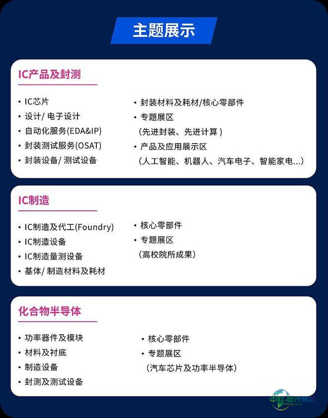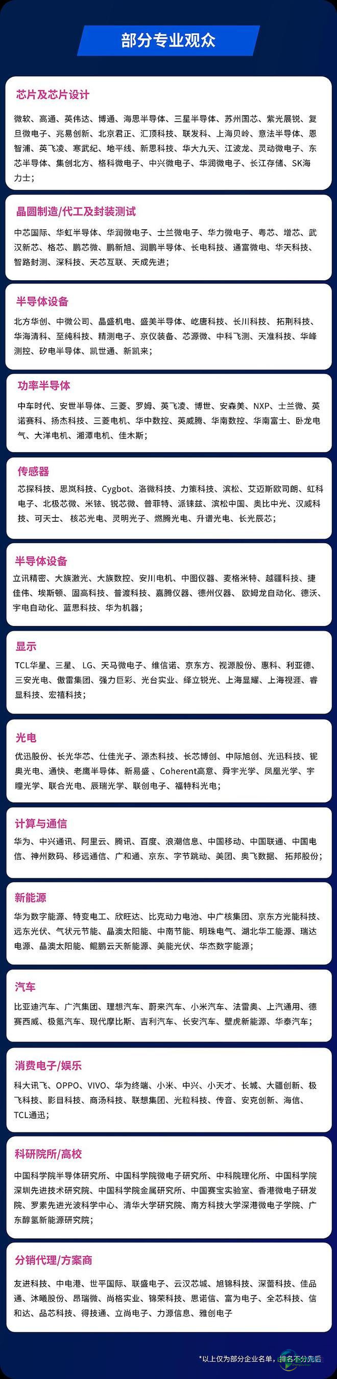 同时,展会也将进一步加强对半导体制造领域的深度呈现与资源匹配,展示晶圆制造与代工服务、封装测试服务、半导体设备、半导体材料、化合物半导体、半导体核心零部件等关键制造环节的最新技术与产品,持续助力半导体制造产业的进步。