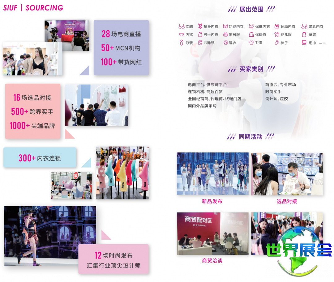 深圳国际品牌内衣展览会(SIUF)是国际内衣品牌与国内内衣生产基地进行高端展示的重要窗口。它以中国内衣产业为坚实根基,以国际化的品牌展览为核心形式,旨在促进行业与市场的沟通,致力于构建区域产业互联互通的信息体系,全力打造一个融合品牌推广、文化传播、展示交易、高端交流、市场拓展与财富创造于一体的国际级商务平台。