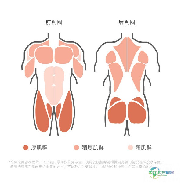人体全身肌肉超过600块,有的肌肉厚实,有的则相对纤薄,且不同个体的肌肉状况也存在差异。为了达到理想的放松效果,针对不同深度和厚度的肌肉,需要匹配不同的振幅(即按摩深度)。
