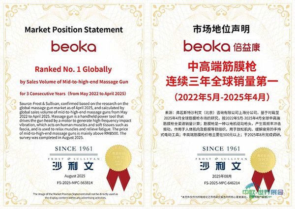 在市场表现上,倍益康已获得全球知名机构沙利文认证的“中高端筋膜枪连续三年全球销量第一”(2022年5月至2025年4月),产品远销全球70多个国家和地区。D2 Max作为倍益康将专业医疗康复技术普惠化的新载体,旨在将专业的肌肉放松体验带给每一位消费者。